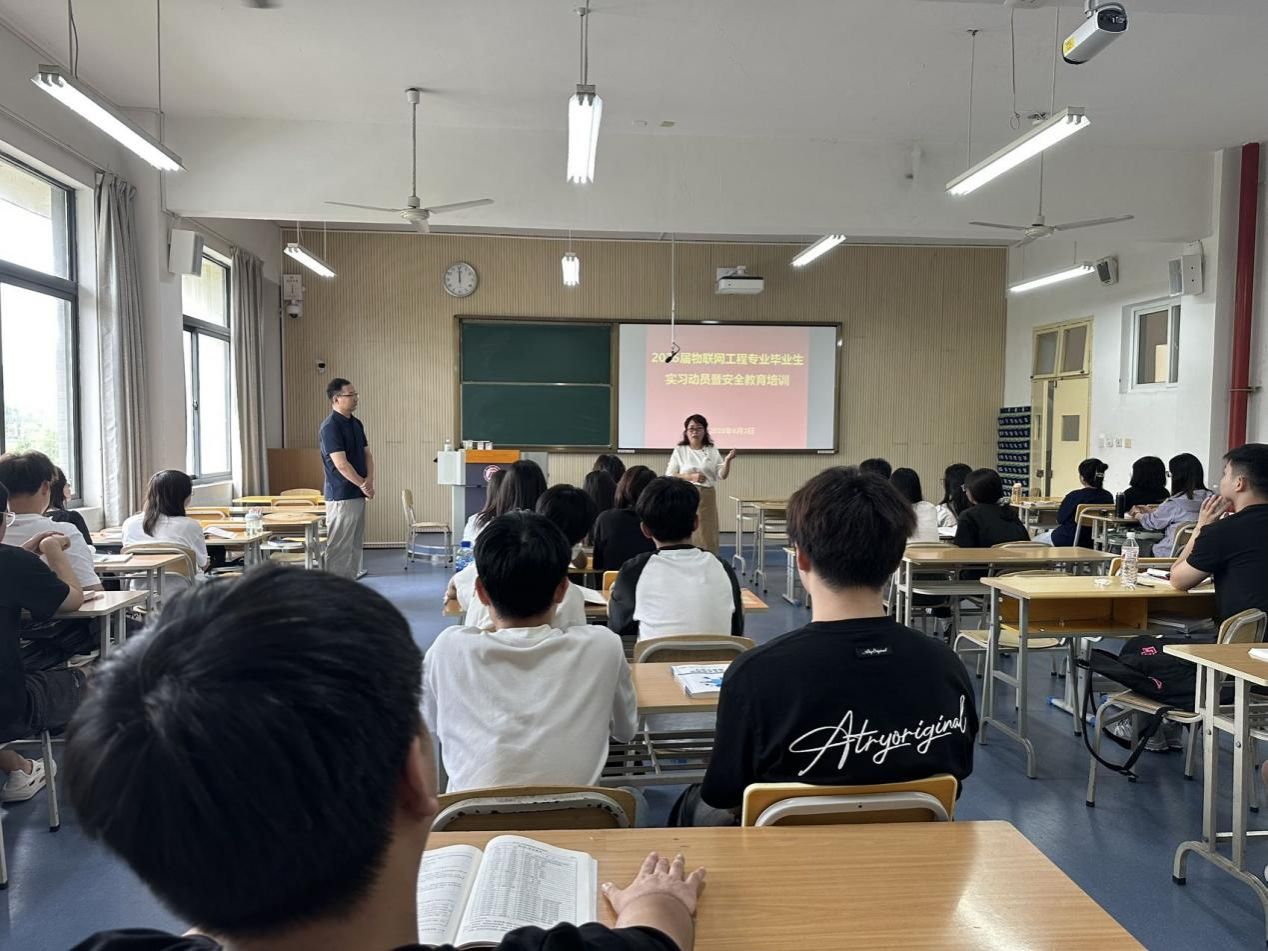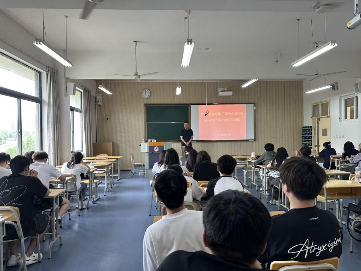 2025年6月3日下午,物联网工程专业2026届毕业生实习动员暨安全教育培训会在江北校区1号教学楼1317教室举行,辅导员成英丽及2026届物联网工程专业全体员工参加了会议,会议由系主任刘星亮主持。