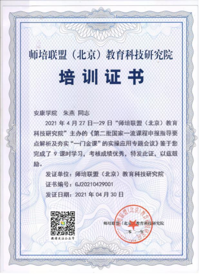 4月27日至4月29日,由师培联盟(北京)教育科技研究院主办的第二批国家一流课程申报指导专题会议在线上举行,365英国上市公司派电子系教师朱燕和计算机系教师丁敏喆参加了本次会议。