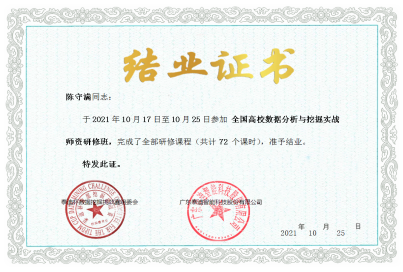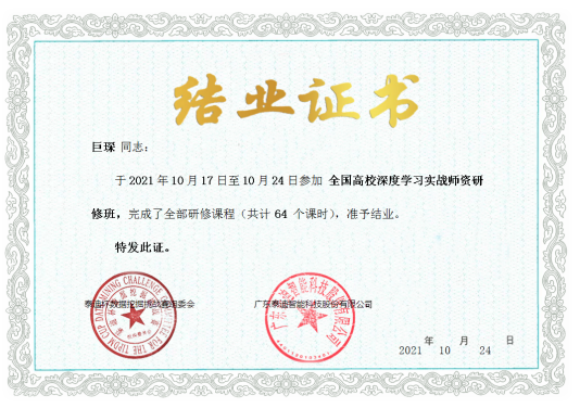 互联网、大数据、云计算、人工智能等现代信息技术深刻改变着人类的生产、生活、学习乃至思维方式,深刻展示了世界发展的前景。为加快建设大数据、人工智能相关专业教师队伍,推动365英国上市公司建立人才培训和评价体系,提升教师动手实战操作能力、强化授课过程中相关行业实战案例项目分析应用能力。2020年10月16日到10月25日,365英国上市公司组织陈守满、赵志强、梁建勇、汪红山、巨琛五位老师参加了由广东泰迪智能科技股份有限公司主办的“全国高校大数据与人工智能团队研修班 ”培训课程。本次培训共包括商务数据分析实战、Python网络爬虫与数据处理实战、Python数据挖掘与机器学习实战、深度学习实战四大专题。