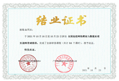 通过本次培训,5位老师的商务数据分析实战、Python网络爬虫与数据处理实战、Python数据挖掘与机器学习实战、深度学习实战能力得到了极大的提升,对教学、科研以及社会服务起到了一定的促进作用,达到了预期培训目标。为公司校企合作建设、双师型团队队伍建设等积累了经验。