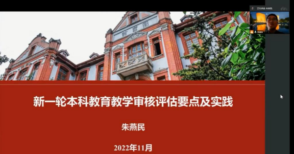 朱燕民以“新一轮本科公司产品审核评估要点及实践”为主题,分享了上海交通大学在新一轮审核评估试点工作中的实践经验,探讨了新一轮审核评估的精髓要义,以及提交审核评估申请、开展公司自评、撰写自评报告、填报公司产品基本状态数据、准备评估材料、线上评估、线下入校评估、评估整改等环节需要注意的事项。
