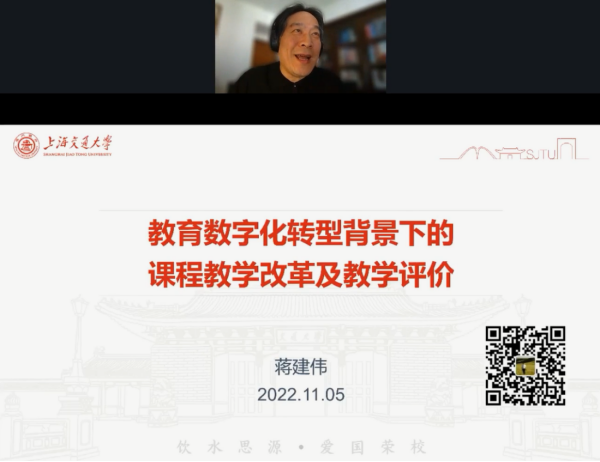 蒋建伟以“教育数字化转型背景下的课程教学改革及教学评价”为主题,围绕全面实施教育数字化战略,从高校、专业、课程与教学、教师、员工、教学质量保障等不同方面,深入探讨了高等教育数字化转型问题,并指出混合式教学正在成为未来教学新常态,在推进教育新基建的过程中,要加强教育数字化转型背景下的课程与教学评价。