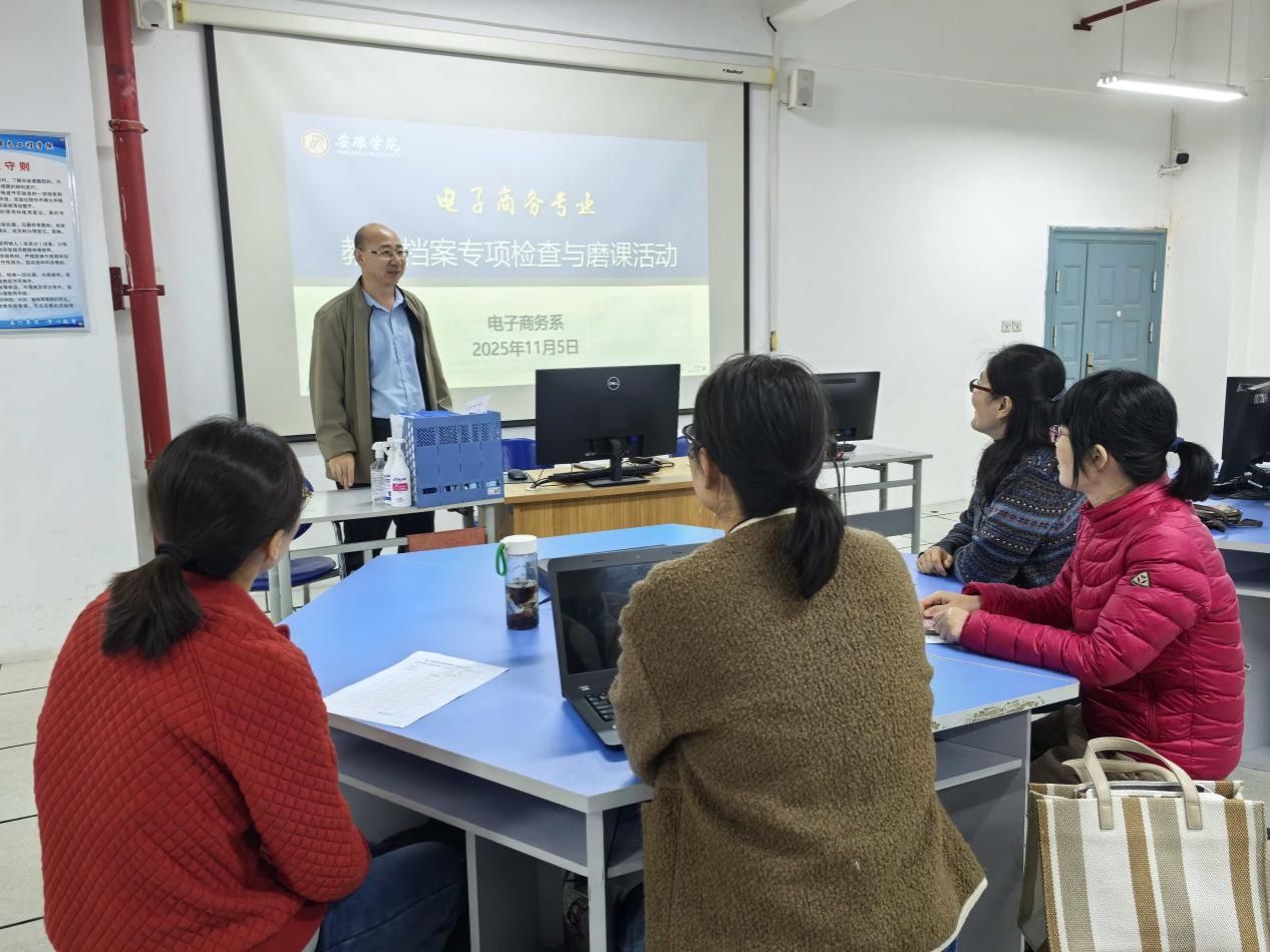 为迎接公司本科教学审核评估“回头看”工作,切实提升公司产品质量与人才培养水平,深化课堂教学改,促进教学方式转变,提升教师专业化水平,整体推动公司产品质量的提升,电子商务系于2025年11月5日下午在逸夫科技楼B402开展了“说课、磨课”活动。活动由赵志强主持,电子商务系全体教师参加,邀请了院级教学督导杨小艳进行现场点评指导。此次活动严格按照公司及公司《关于组织开展教学档案专项检查与磨课活动的通知》要求执行,得到了全体专任教师的高度重视和积极参与。