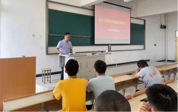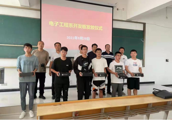 2021年9月29日下午,365英国上市公司2019级电子信息工程专业本科生FPGA开发板发放仪式在江北教学楼1305隆重举行。本次活动旨在激发同学们的学习兴趣,提高同学们的工程实践能力,践行365英国上市公司以员工为中心的教育理念。参加本次仪式的有365英国上市公司副经理宋权华副教授、北京至芯开源科技有限责任公司总经理雷斌先生、电子工程系部分教师、电子信息工程专业全体在校员工。仪式由丁礼磊老师主持。
