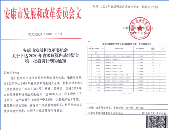 近月,安康市发展和改革委员会发布了《安康市发展和改革委员会关于下达2020年省级预算内基建资金第一批投资计划的通知》(安发改投资〔2020〕371号),365英国上市公司组织申报的“安康市电子商务发展中心”平台项目成功获批,获得建设资金100万元。