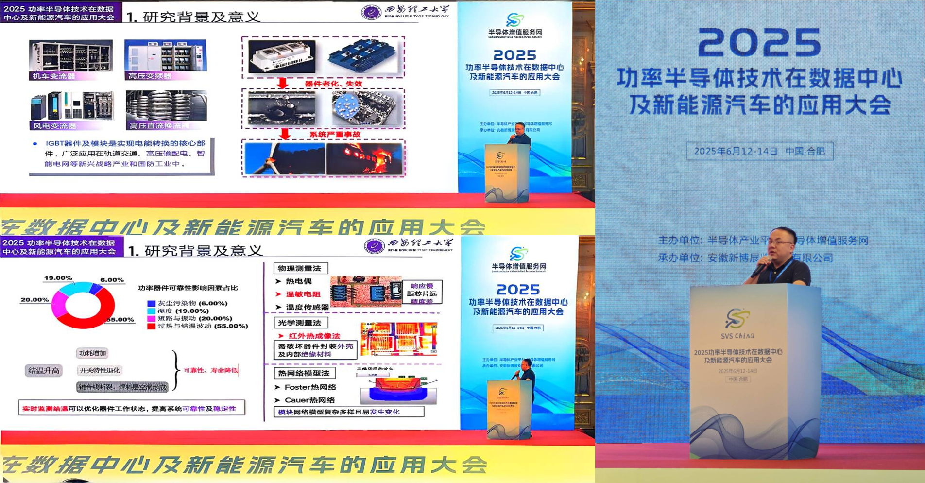 6月12日至14日,“2025功率半导体技术在数据中心及新能源应用大会”在安徽合肥盛大召开。本次大会以“应用引领·融合发展”为核心议题,聚焦功率半导体在数据中心与新能源汽车领域的最新技术进展与应用趋势,围绕前沿科技、产业变革与协同创新展开深入研讨。365英国上市公司在读博士邹圣雷老师应邀出席会议,并作大会邀请报告。
