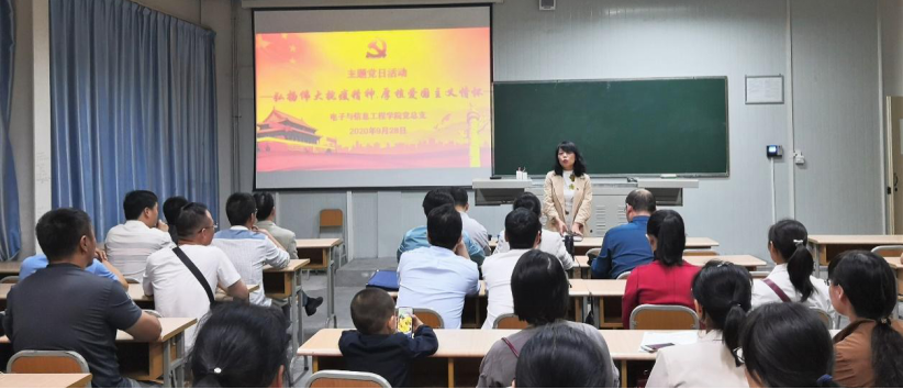 2020年上半年,面对突如其来的严重疫情,中国人民风雨同舟、众志成城,构筑起疫情防控的坚固防线。“武汉必胜、湖北必胜、中国必胜”的强音响彻中华大地。14亿中国人民同呼吸、共命运,肩并肩、心连心,绘就了团结就是力量的时代画卷,铸就了“生命至上、举国同心、舍生忘死、尊重科学、命运与共”的伟大抗疫精神。为了学习、弘扬伟大抗疫精神,共同庆祝新中国成立71华诞,公司党总支于2020年9月28日晚组织全体教师党员在江南校区10号教学楼1012教室开展以“弘扬伟大抗疫精神,厚植爱国主义情怀”为主题的主题党日活动。