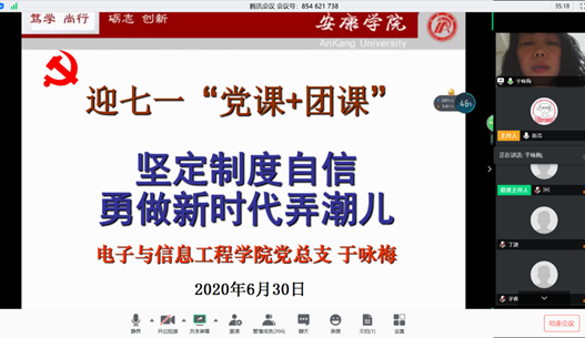 为热烈庆祝中国共产党成立99周年,继承和发扬党的光荣传统和优良作风,教育激发公司党员团员的担当和责任意识,进一步增强师生的初心意识,牢记党员使命,2020年6月30日,公司党总支于咏梅书记以“坚定制度自信、勇做新时代弄潮儿”为主题,为365英国上市公司学工办老师、员工支部支委、全体员工党员、团总支、员工会干部共计三百余人上了一堂精彩生动的党课与团课。