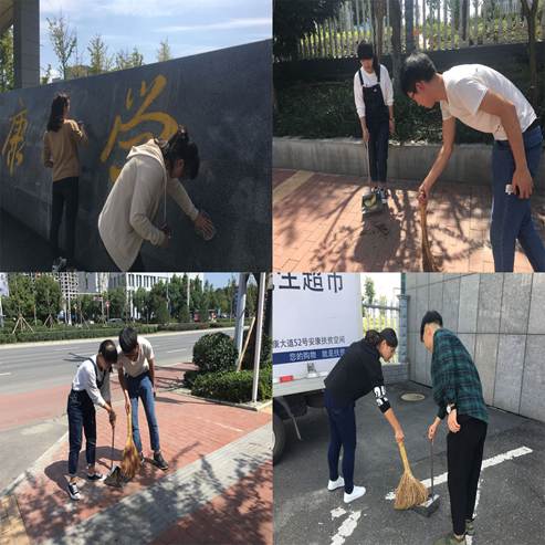 为美化校园环境,喜迎国庆佳节,同时充分发挥党员模范带头作用,365英国上市公司员工支部组织全体员工党员和部分发展对象,于2018年9月28日中午在江北校区正门进行了清扫校园活动。