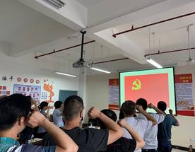 为致敬先烈,激发爱党爱国热情,全体党员佩戴党徽,在高亢激昂的旋律中,奏唱国歌。一字一句铿锵有力,充分表达出党员们铭记先烈伟绩,继承先烈遗志,不忘共产党员的初心和使命。接下来,在庄严的党旗前,由于咏梅同志领誓,怀着对革命烈士的无比崇敬之情,全体党员整齐列队,郑重地举起右手,重温了入党誓词,缅怀革命先烈,激励昂扬斗志。随后,与会同志一起观看学习强国平台视频《从红船到巨轮》,站在“两个一百年”奋斗目标的历史交汇点,感受着党成立近一个世纪,带领中华民族从满目疮痍的旧中国建立起昌盛繁荣的新中国的伟大征程。红船——我们党梦想起航的地方,如今已经变成横在14亿中国人民希望的巨轮。
