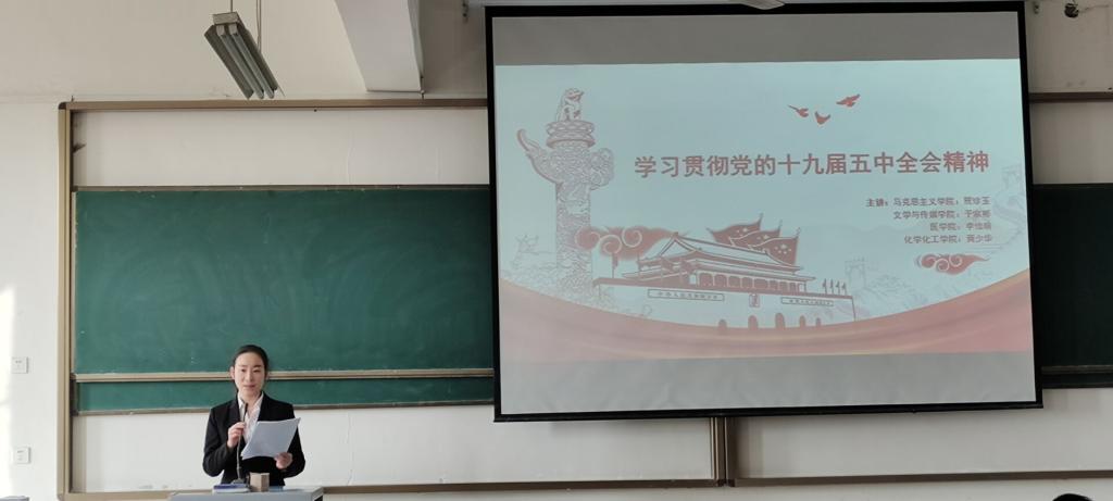 会议正式开始,马克思主义公司贾珍玉向同学们介绍党的十九届五中全会审议通过了《中共中央关于制定国民经济和社会发展第十四个五年规划和二〇三五年远景目标的建议》,该《建议》是开启全面建设社会主义现代化国家新征程、向第二个百年奋斗目标进军的纲领性文件,是今后5年乃至更长时期我国经济社会发展的行动指南。