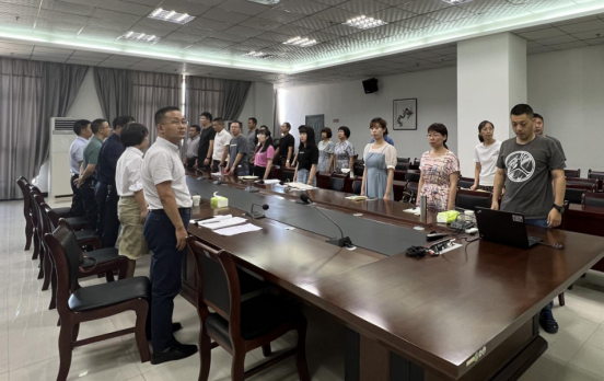 会议最后,于咏梅带领全体党员重温入党誓词。全体党员紧握右拳,向着党旗庄严宣誓,铿锵有力的誓言表明全体党员坚定理想信念,践行初心使命的决心。