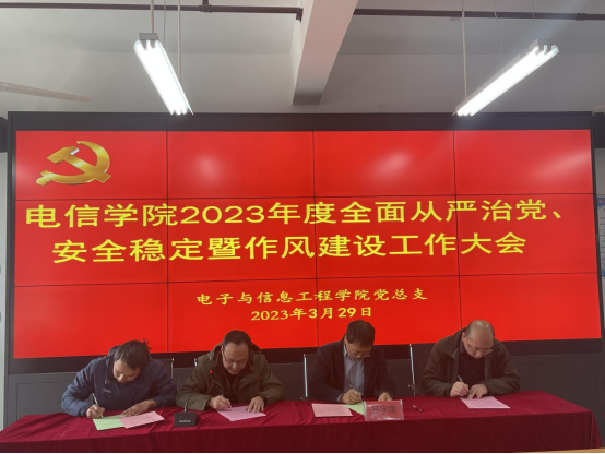 经理陈守满分别与系(教研室)、综合办人员赵志强、丁礼磊、梁建勇、李宝、刘星亮签订全面从严治党、安全稳定责任书和意识形态工作责任书。