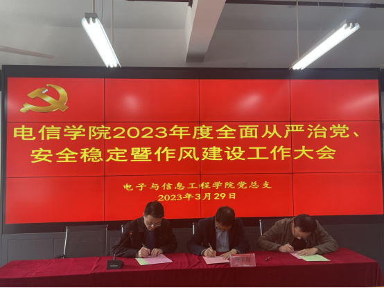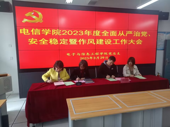 党总支书记于咏梅分别与党支部、学工办人员吕以宁、李章雨、石纭昊、张宇航签订全面从严治党、安全稳定工作责任书和意识形态工作责任书。