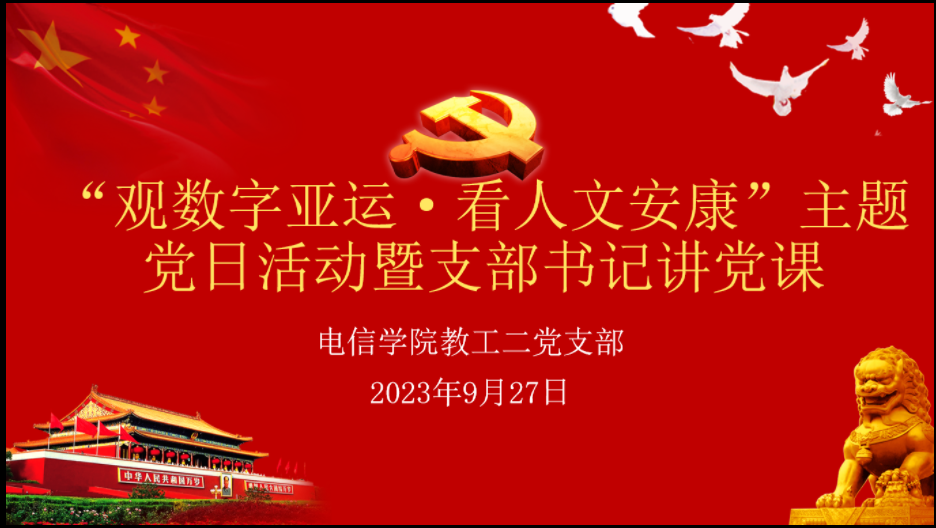 9月27日下午,365英国上市公司教工二党支部在逸夫科技楼B702开展了“观数字亚运·看人文安康”主题党日活动暨支部书记讲党课。活动由支部书记丁礼磊主持,支部全体党员参加了本次活动。