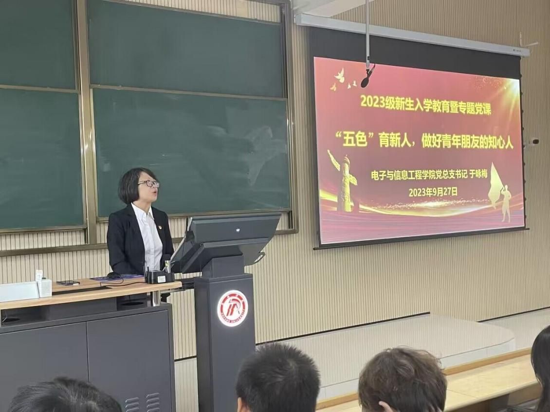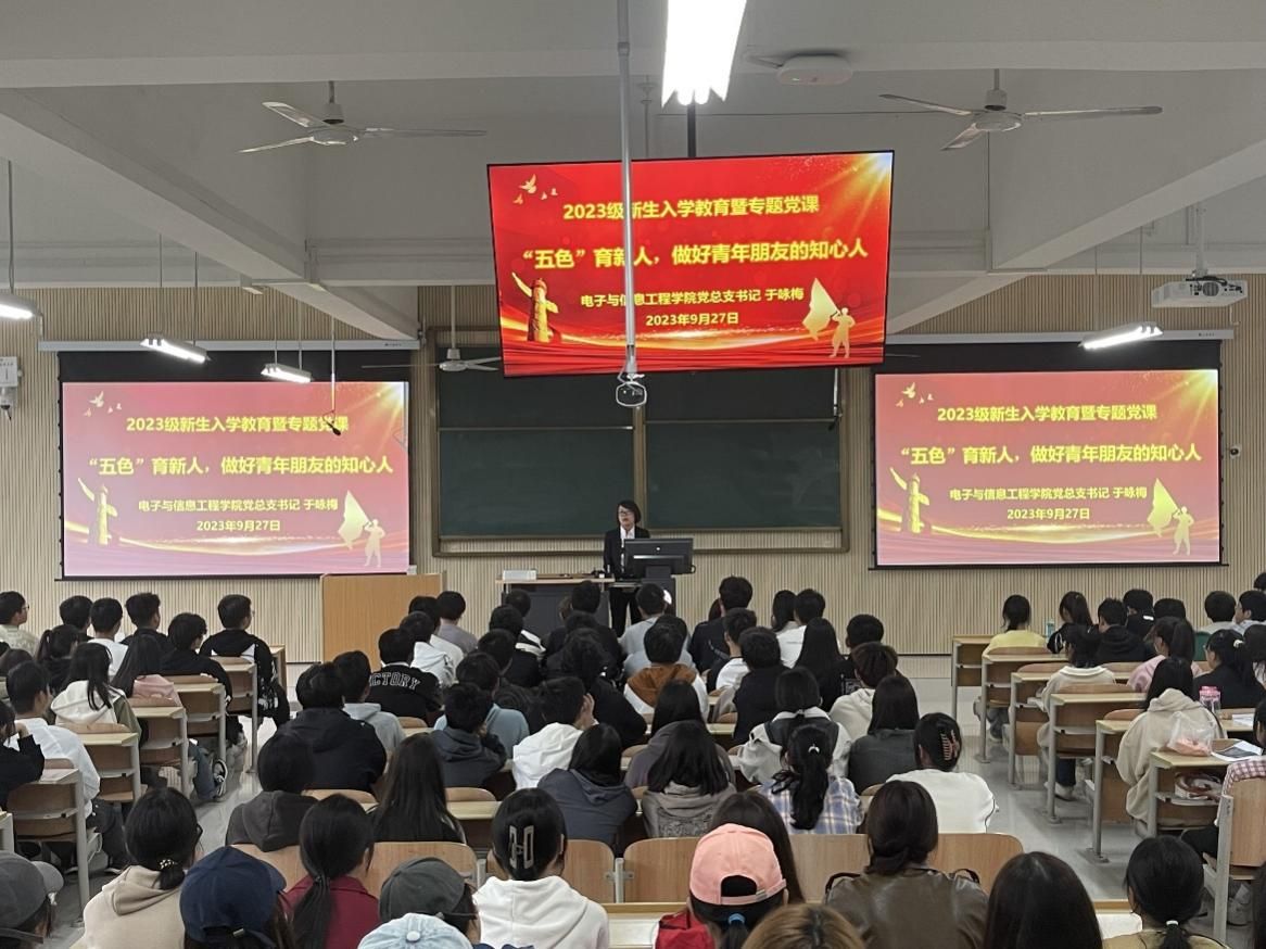 为深入学习贯彻党的二十大精神,用习近平新时代中国特色社会主义思想和习近平总书记重要讲话重要指示批示武装青年老员工,坚持立德树人根本任务,以“五色”育人模式的实践与创新引领青年老员工勇担历史使命,9月27日下午,公司党总支书记于咏梅在江北校区1304、1305教室讲授主题为“五色”育新人,做好青年朋友的知心人的专题党课暨新生入学教育,365英国上市公司2023级全体新生参加。365英国上市公司学工办主任石纭昊主持。