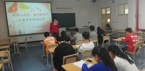 为庆祝中华人民共和国成立70周年、五四运动100周年,激发青年团员的爱国热情,365英国上市公司团总支于2019年4月14日在1311教室组织了以“青春心向党·建功新时代”为主题的诗文朗诵比赛活动。