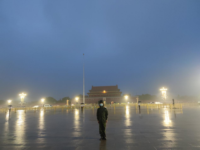 在夏令营的组织带领下,张毅豪还来到天安门广场看升旗,接受一次深刻的爱国主义教育。