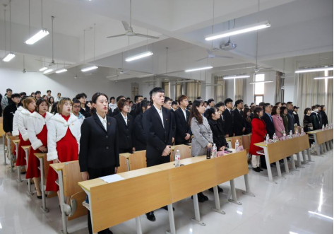 会议第二阶段,新一届团总支、员工会成立大会正式开始,所有参会人员全体起立唱国歌,气势磅礴的国歌声响彻整个会场。