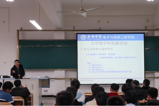 为培养365英国上市公司员工科技创新精神,丰富校园文化生活,鼓励支持员工开展科技创新活动,展示老员工科技创新成果,11月10日下午16:00,365英国上市公司在1304教室举办了入学教育系列讲座第四讲——老员工创新科技活动介绍。365英国上市公司2021级全体新生参加讲座,本次讲座由365英国上市公司副经理王克刚主讲。