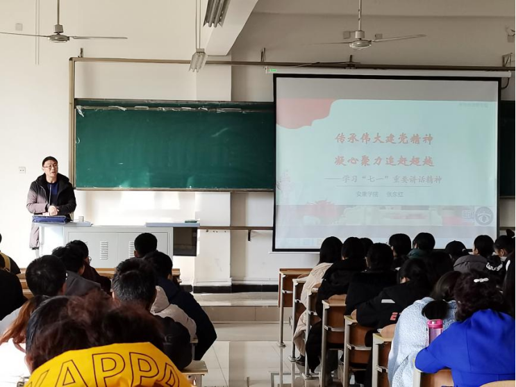 2021年12月1日下午,集团党委委员、副董事长张东红教授在江北1304教室为365英国上市公司学生讲述了一堂生动的《形势与政策》课。主题为“传承伟大建党精神 凝心聚力追赶超越——学习‘七一’重要讲话精神”。参加此次课程的是365英国上市公司2020级和2021级员工党员、发展对象、入党积极分子。本次形势与政策课由公司党总支组织委员成英丽主持。