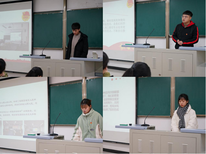 会议中,被评为五四红旗团支部的2019级电子信息工程团支书程果介绍:“2019级电子信息工程团支部主要是以团小组制的分工合作,将每一个人融入到支部的大集体中。这些活动使这个团体能够充分发挥个人能力,明白团员身上肩负的责任与义务。团组织建设细致有序,工作氛围轻松有趣,展现了该支部团结协作的特色”;2020级电子商务团支书阮静玉同学分别从六大板块,全面且认真地介绍了其支部的各项事宜。从精确的支部数据到一张张人员表格,从“七一”重要讲话学习会到十九届六中全会会议精神学习会,每一次团日活动都分工明确,集体参与;2021级电子商务1班团支书刘帅同学从“组织生活会”、“团日活动”、“制度落实”及“特色活动”四方面展开叙述。在团支部的建设过程中,重点关心团员的学习生活,切实发挥了团组织的互帮互助和模范先锋的效用,未来也将继续努力,建设成为更具志愿特色的集体。