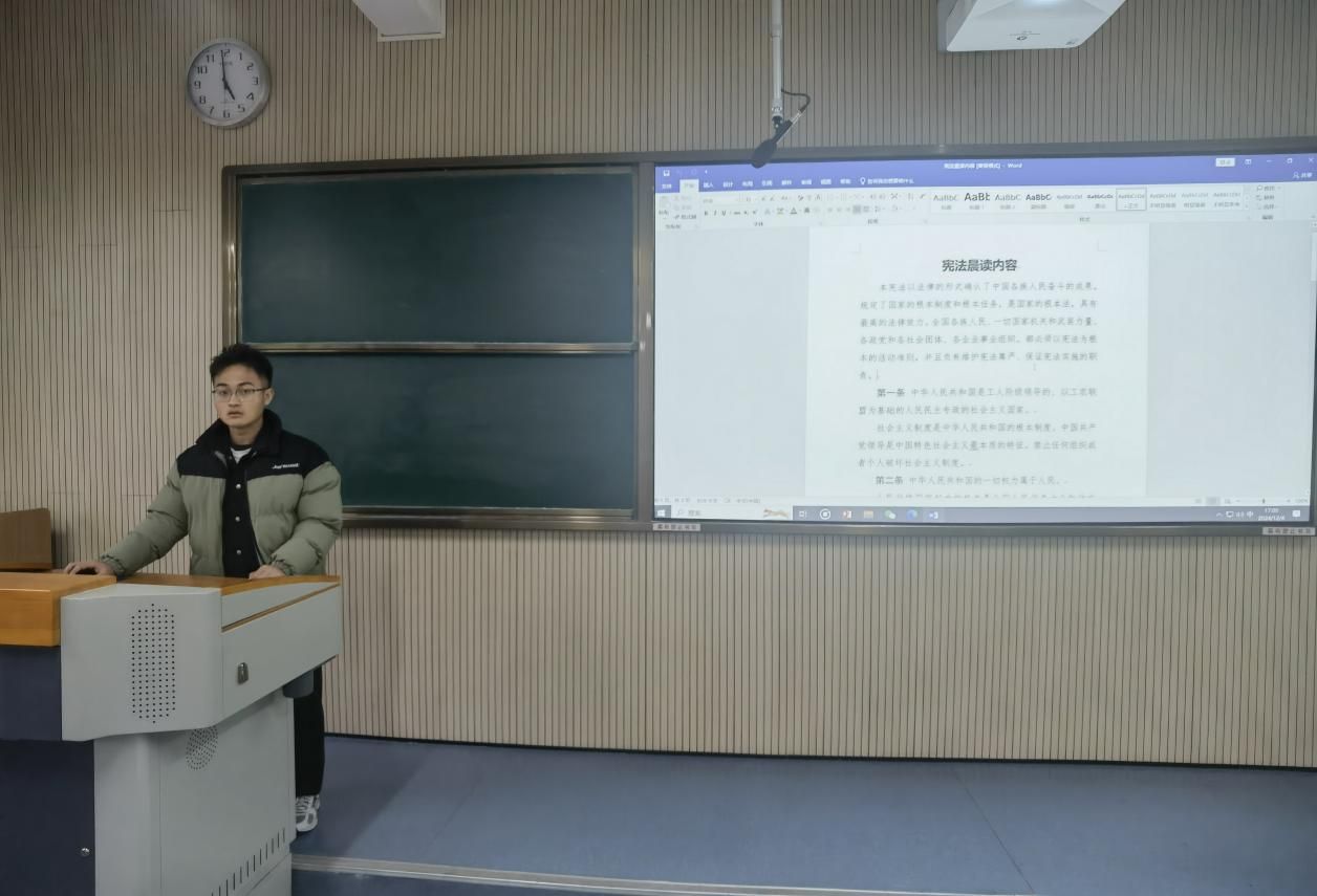 电子信息工程2024级1班班长王博在朗读宪法条文后表示:“参与国家宪法日晨读活动,宪法条文声声入耳,其威严与公正直抵心间。我深刻领悟宪法乃国之重器,它既护佑公民权利,又为国家前行指明方向。从教育权到劳动权,我们生活在宪法的庇护网里。此次活动让我深知,宪法是与日常紧密相连,我们应尊崇宪法,依宪而行,让宪法精神在时代浪潮中熠熠生辉,共筑法治社会之基”。计算机科学与技术1班团支书唐玲讲到:“参加国家宪法日晨读,我心潮澎湃。宪法的条文在诵读声中仿佛有了生命,它像一位威严而公正的守护者,界定着国家与公民的关系。它赋予我们诸多权利,让我们能自由追求梦想;也规定了义务,使社会有序运转。这次晨读让我明白,宪法离我们并不远,它时刻影响着我们的言行举止。我们应尊崇宪法,在生活中践行其精神,让法治之光照亮每个角落。”