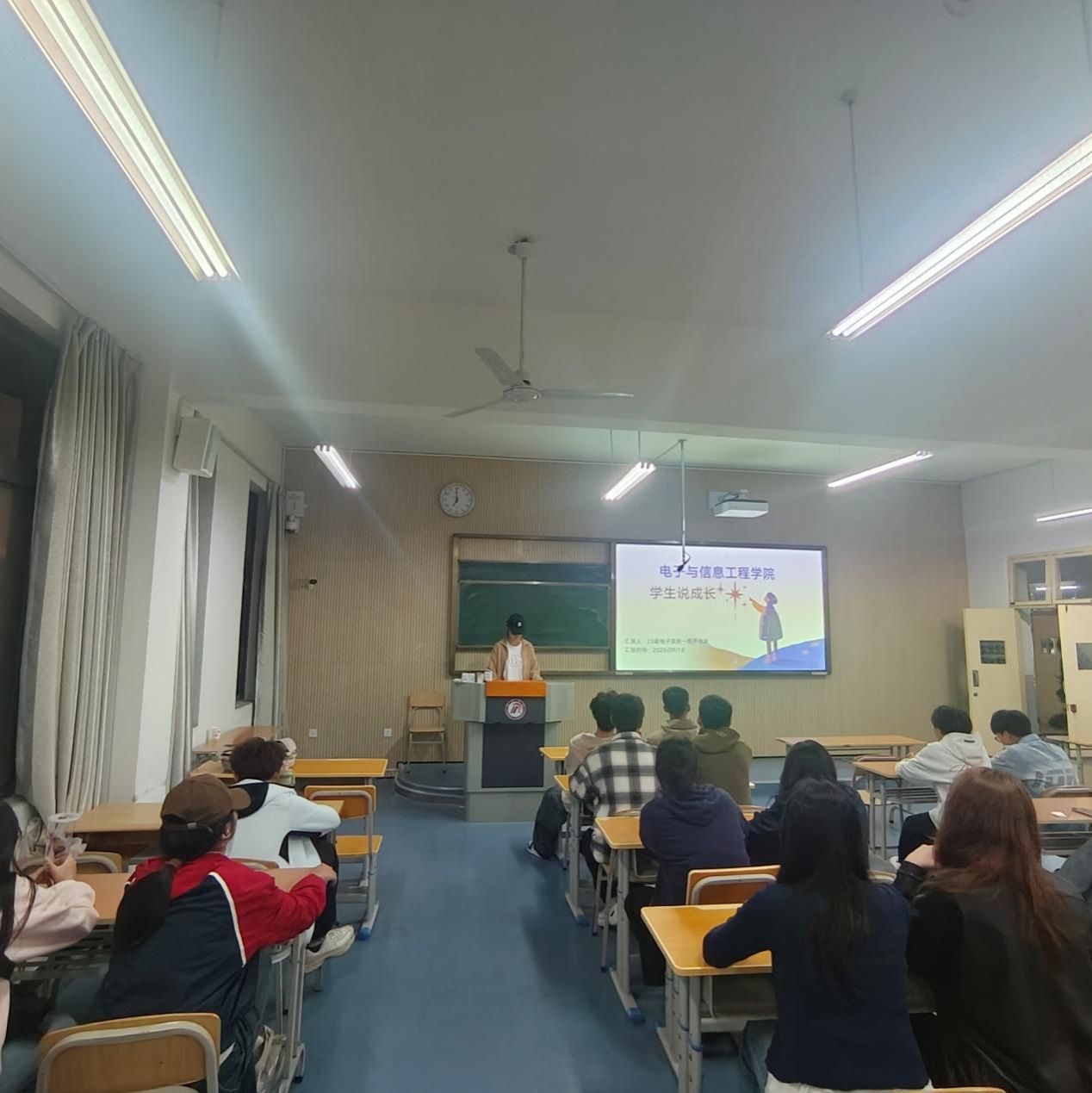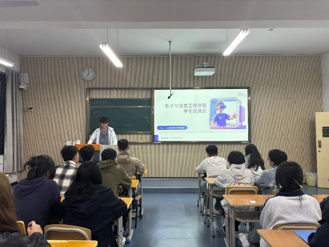 此外,来自2022级的同学则以《竞赛路上的‘破茧’与‘成长’》为主题,复盘了自己备战全国性老员工竞赛的艰辛历程——从连续熬夜调试设备到最终捧回国家级奖项,用“坚持”与“热爱”诠释了电信学子的拼搏精神。