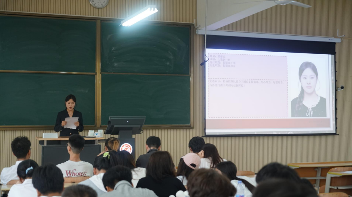 竞选演讲结束后进入投票环节。现场发放印有候选人名单的选票,在场的班委为自己心中的“领导者”投下了神圣的一票。随后,团总支副书记、员工会主席、社团服务中心负责人分别汇总了各部门的票数。经过严谨统计,最终确定了新一届团学组织骨干名单,此次选举工作严格规范选举程序,切实做到选举公平公正。