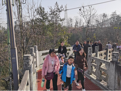 参与活动教师及家属上午八点半在江南校区图书馆门口集合后,徒步登顶香溪洞。春光明媚,天朗气清,徒步过程中,公司领导与同行女教师深切交流、对她们表示关心、慰问。