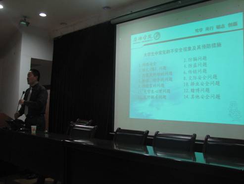 10月31日晚,电信系在一号教学楼六楼报告厅为2011级新生举行安全教育知识讲座。