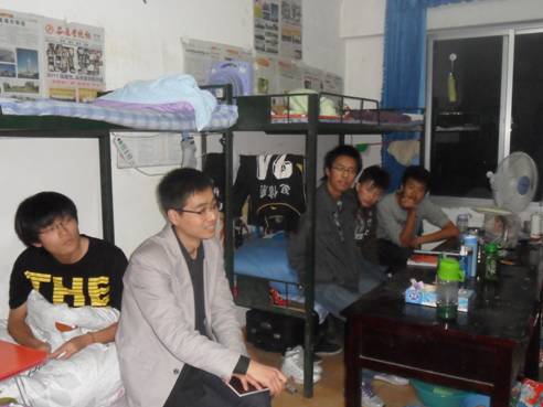 10月26日晚,电信系员工分会对于新生男生宿舍进行走访,开展宿舍座谈活动。