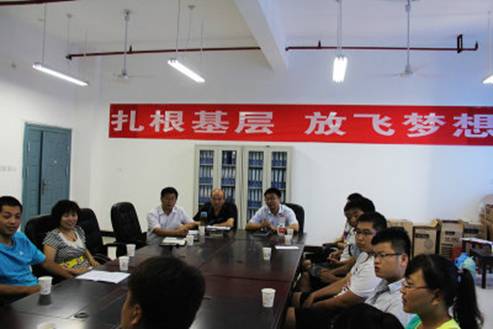 7月6日下午电子与信息工程系在科技楼B702室举行了主题为“扎根基层 放飞梦想”的毕业生座谈会。参加座谈会的有电子与信息工程系系领导、系办公室主任、系学工办主任、辅导员、2013届毕业生中考取村官、参加西部计划、考取西藏灵芝公务员、考取社区主任和参军的员工代表。座谈会由学工办主任石纭昊主持。