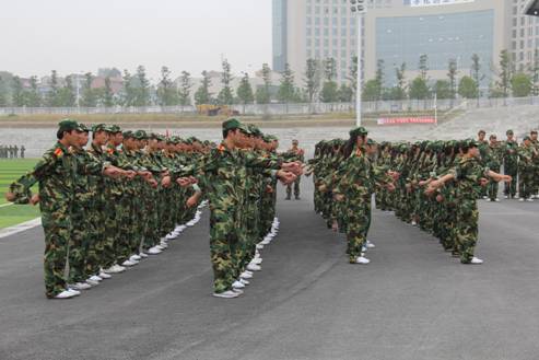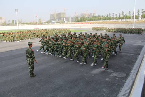 运动场上,2013级的新生们个个穿着整齐的军服,正在骄阳下稍息、立正、站军姿、走正步。烈日炎炎,同学们汗流浃背,但仍然坚持训练下去。在她们心中有一个坚定的信念,那就是坚持,坚持,再坚持。同学们清楚的知道军训是老员工活中的第一课,是他们锻炼体魄、增强体质、磨练意志、加强集体荣誉感、培养良好行为习惯的宝贵经历,是把自己融入到新集体的一次难得的机会。因此在此次军训中他们都倍感珍惜。与此同时,他们也懂得了许多国防知识,培养了团队精神,增强了国防意识。