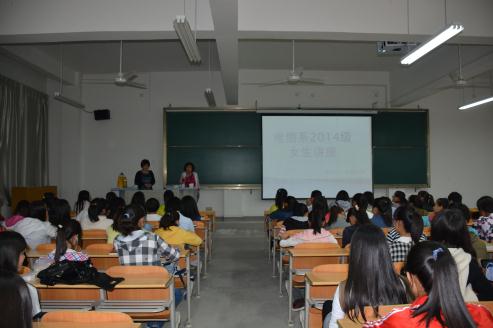 10月9日晚7:30,在江北校区1304教室,电子信息工程系特邀员工处车静老师对2014级女生进行了一场以“自尊自爱、健康成长”为主题的教育讲座。