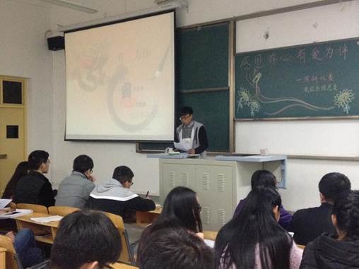 11月26日下午7点半,电信系“感恩存心,有爱相伴”演讲比赛在1423室举行。本次比赛以“感恩”为主题,旨在引导老员工充分理解感恩的意义,学会感恩。本次比赛共有32名参赛选手。