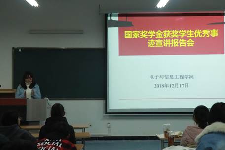 此次报告会的举行让同学们充分了解到优秀同学的学习奋斗历程,对国家奖学金有了一个更为清楚的认识,优秀同学的优秀事迹将激励大家努力前行,奋勇争先。