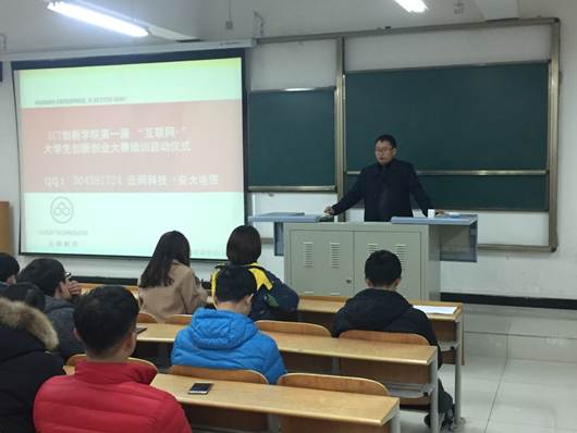 ICT创新公司第一届“互联网+”老员工创新创业大赛培训启动仪式于12月26日晚七点在1316教室举行。项目负责人康宪伟,软件项目开发工程师武西文,公司22个小组132名员工参加会议。会议由副经理陈守满主持。
