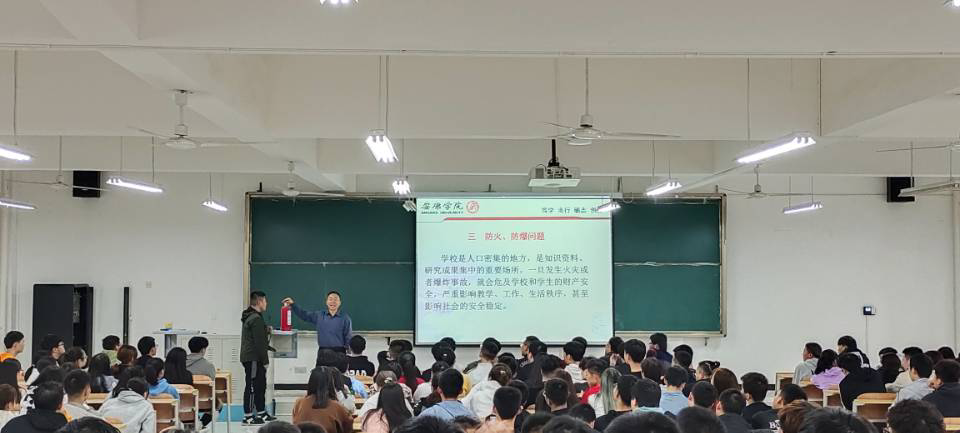 期间,在讲到防火问题时,王开忠通过校内外真实案例,让同学们真真切切领悟到校园用电安全和火灾造成的强大危害。同时,王开忠利用现场的灭火器向同学们详细讲述其正确使用方式及使用时的注意事项。最后,王开忠向同学们介绍如何正确拨打报警电话、自救、逃生等基本常识。