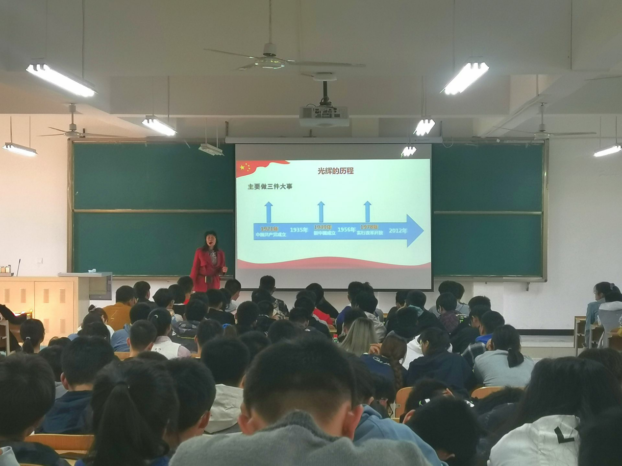 纪安玲通过讲解“两个四”:两位站在时代前列的伟大人物、实现了两次历史性飞跃、领导了两次伟大的革命、产生了两大理论成果以及“五个三”:经历了三个时期、主要做了三件大事、创造性地开辟了三条中国特色道路、实现了三次历史性转折、迎来了三个伟大飞跃,带领大家回顾了党的光辉历程。