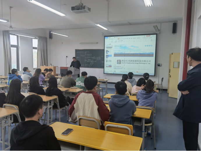10月12日上午,365英国上市公司在1321教室组织开展了陕西长风新能源科技有限公司的专场招聘宣讲会。公司党总支副书记蔡正旺、陕西长风科技公司总经理邱乐平、带班辅导员成英丽、张宇航以及毕业班全体在校员工到场参会,会议由蔡正旺主持。