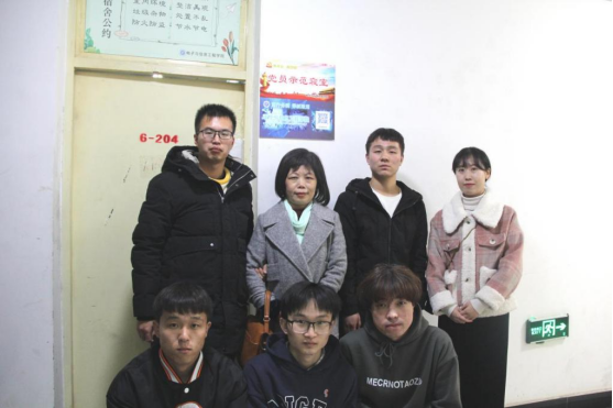 ​公司党总支书记于咏梅、辅导员李章雨与党员示范宿舍同学合影留念