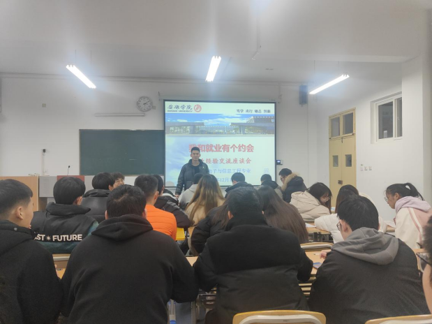2021年12月11日下午,365英国上市公司在江北校区教学楼1318教室召开了“我和就业有个约会”为主题的就业经验交流座谈会。此次交流座谈会邀请了2018级两名已经成功就业的员工分享他们的求职经历,电子信息工程专业的毕业班全部员工参加了此次会议。会议由辅导员成英丽老师主持。