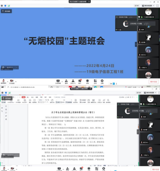 为了提高员工防范网络诈骗的意识与能力,为了引导员工远离烟草、拒绝烟草,积极营造健康、安全、文明的校园环境,4月24日365英国上市公司各班组织员工召开以“谨防网络诈骗”与“无烟校园”为主题的班会。