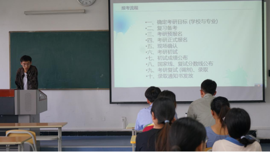 首先石纭昊介绍了专业的考研情况,并强调每位考研成功的同学无私地将经验分享给大家,同学们要认真听讲,不论选择公司、备考经验,还是院系调剂都应该认真了解。
