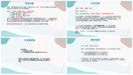 最后,被西安建筑科技大学物理学专业拟录取的杨雪针对备考心态为大家做了详细介绍,备考过程中,需要平心静气,不急不燥,按照计划一步一步进行;适当的休息可以更好的调节我们的心态,放松身心,保证后期更好的学习;一个人备考不容易坚持,找一个志同道合的小伙伴一起,可以相互鼓励,相互探讨;备考过程枯燥乏味,但是不要轻易放弃,坚持下去,最后可能就会收获“柳暗花明又一村”的惊喜!她告诉大家:“事物的发展往往是螺旋式上升和波浪式前进,道路是曲折的,但前途是光明的。”