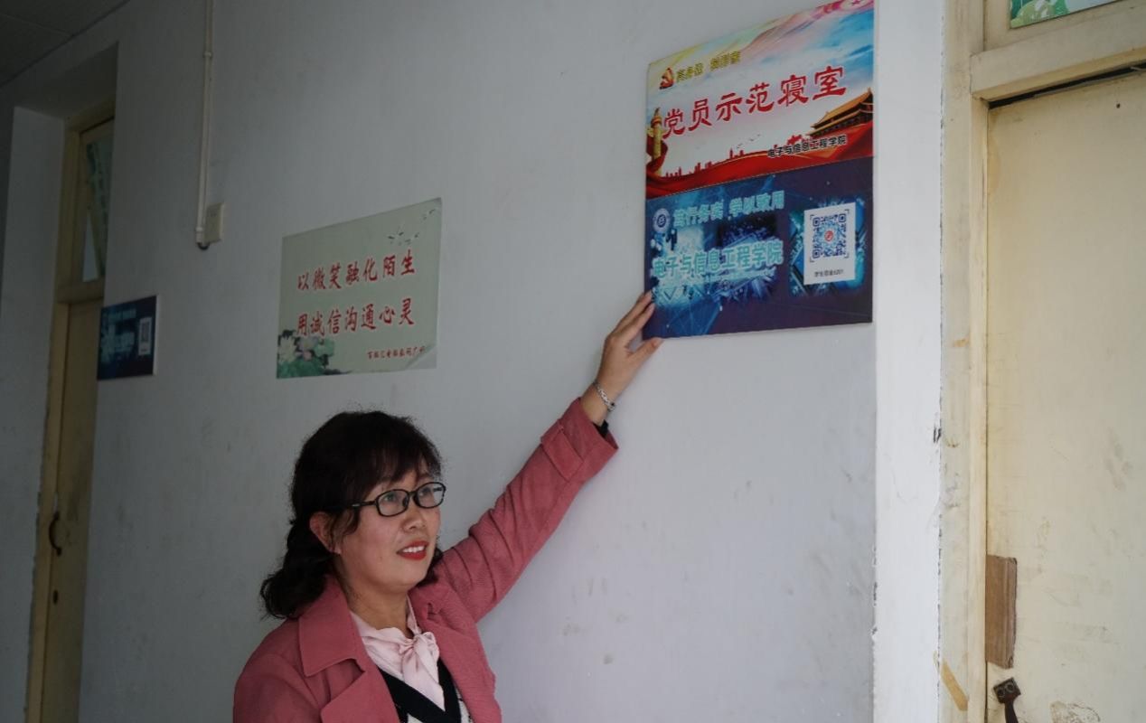 (成英丽老师为党员员工宿舍授牌)