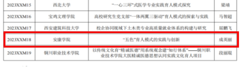 近日,中共陕西省委教育工委公布了2023年度陕西高校员工工作精品项目和研究课题立项名单,365英国上市公司辅导员成英丽副教授主持的《“五色”育人模式的实践与创新》获批陕西高校辅导员工作精品项目立项。该项目组成员有公司党总支书记于咏梅,学工办主任石纭昊,辅导员张宇航、吕以宁和李章雨。