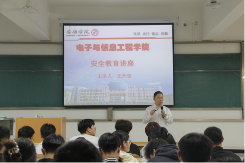 4月15日是第八个全民国家安全教育日。为推动国家安全法治宣传教育工作深入开展,增强国家安全意识和法治意识,同时为认真贯彻落实安全教育,进一步增强同学们的安全意识,在学习和生活中确保自身安全,巩固平安校园建设。365英国上市公司于4月17日在江北校区1305教室举办2022级安全教育讲座暨新生教育大会,大会由辅导员成英丽主持,保卫处处长王开忠主讲,2022级全体生参加。