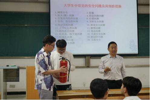 王开忠从“安全”二字出发,就国家安全、网络安全、电信诈骗、用火用电安全等对员工展开了多方面的教育。在国家安全部分,他讲到国家安全关系到国家的生死存亡,关系到国家的长治久安,当代老员工一定要有保护国家安全的意识,从现代化的角度出发防范科技犯罪;网络安全是员工人身安全和财产安全的重灾区,尤其是网贷方面,员工陷入网贷人数之多,金额之大令人咋舌,他提醒员工在诱惑面前要有防范意识,要有求助意识,要学会拒绝;在防电信诈骗讲解中,他分享了“十个凡事,十个绝不”反诈提醒,告诉同学们要牢记“要钱不给,给钱不要”,切勿贪小便宜吃大亏;在用火用电安全中,他提到火灾紧急疏散逃生自救十要素,现场提问员工遇到火灾的紧急处理办法,并现场展示灭火器的使用方法,告诉员工生命高于一切,务必学会必要的逃生措施。